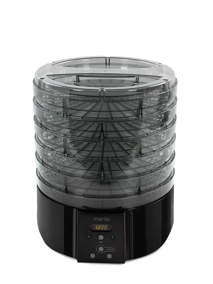 Сушилки фруктов Дегидратор сушилка для овощей электросушилка MARTA MT-FD1886H 12 поддонов (6 основных + 3 для пастилы + 3 для ягод) черный жемчуг