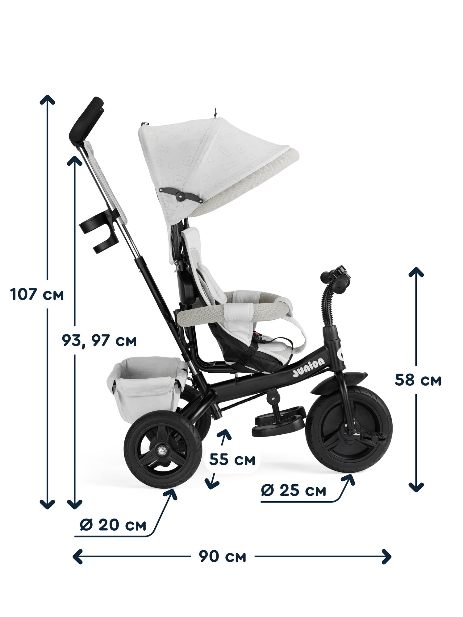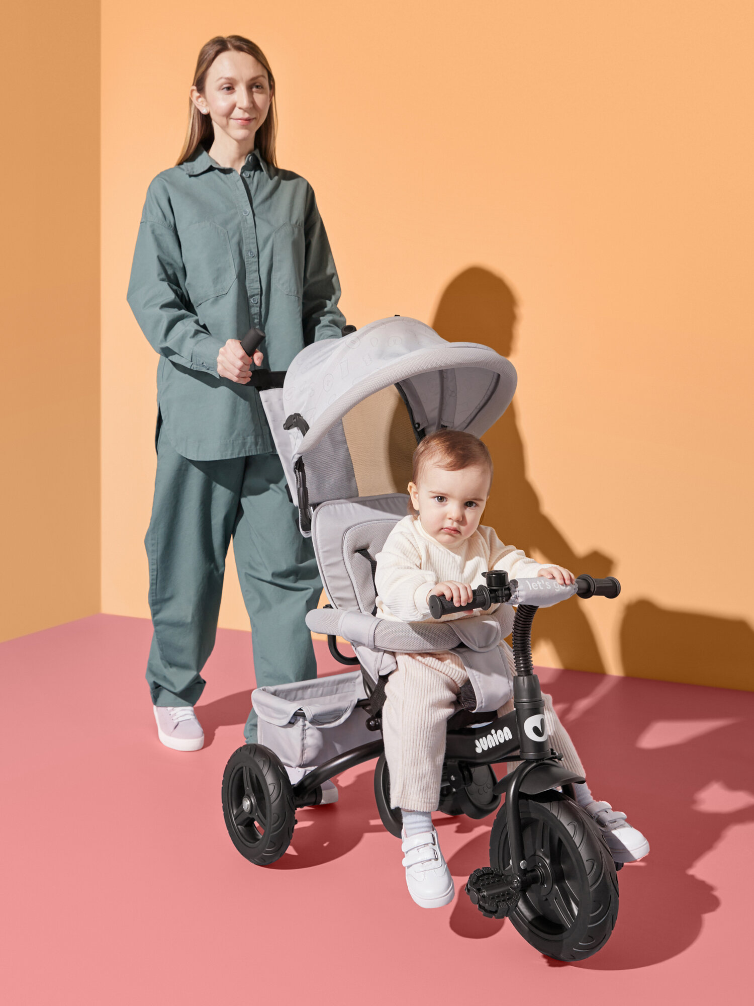 Детские велосипеды Детский трехколесный велосипед с ручкой JUNION Elefy, серый