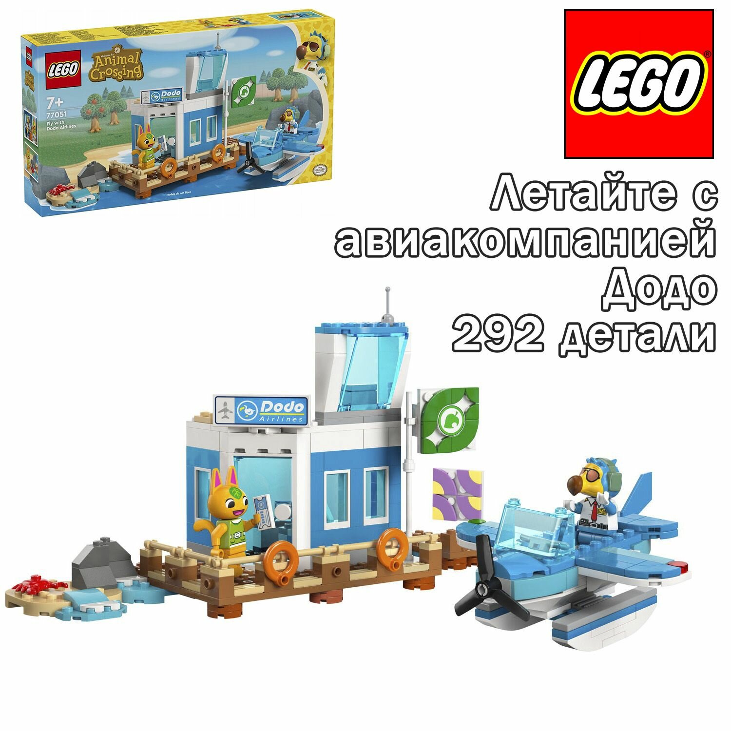 Конструкторы Конструктор LEGO Animal Crossing Летайте с авиакомпанией Додо, 292 детали, 77051