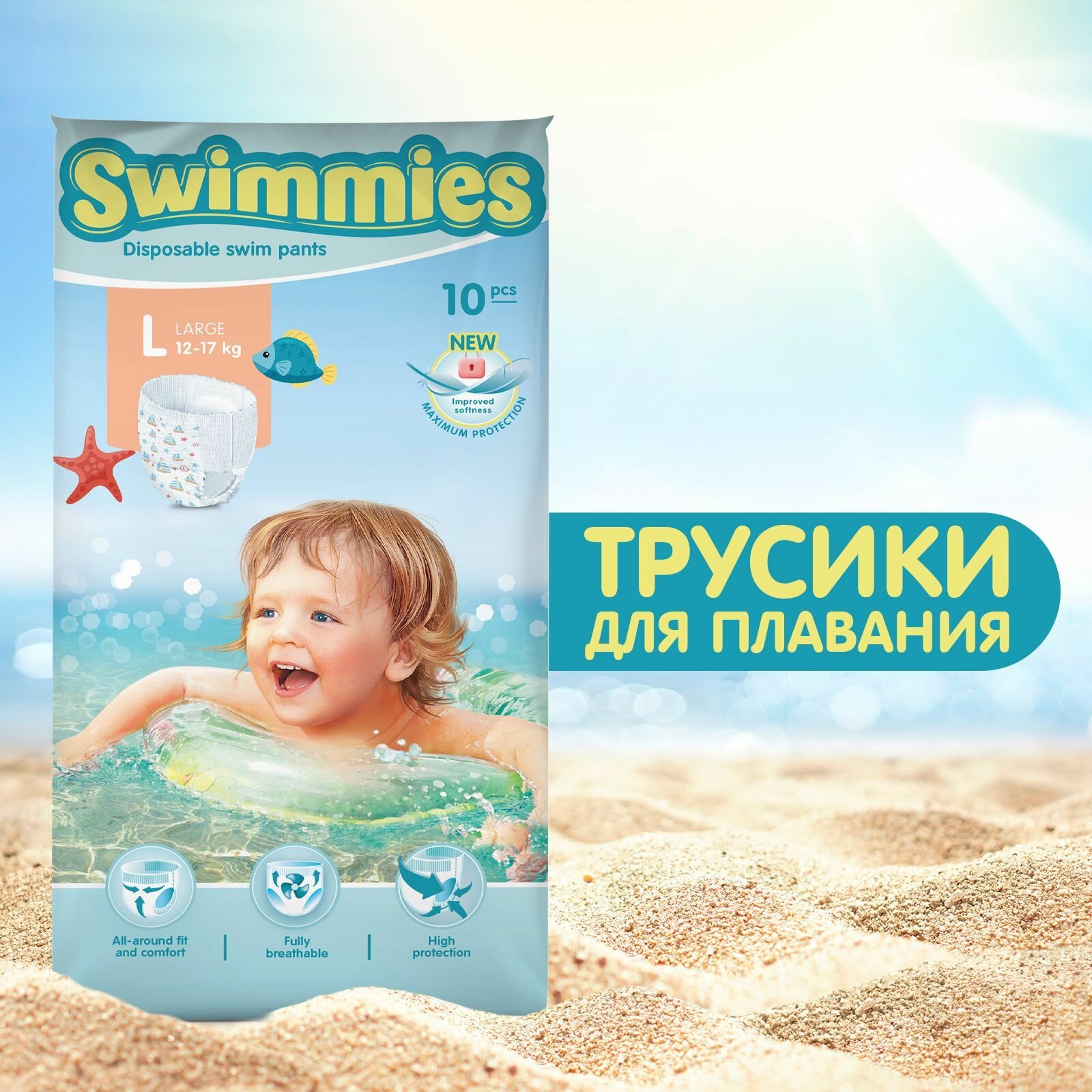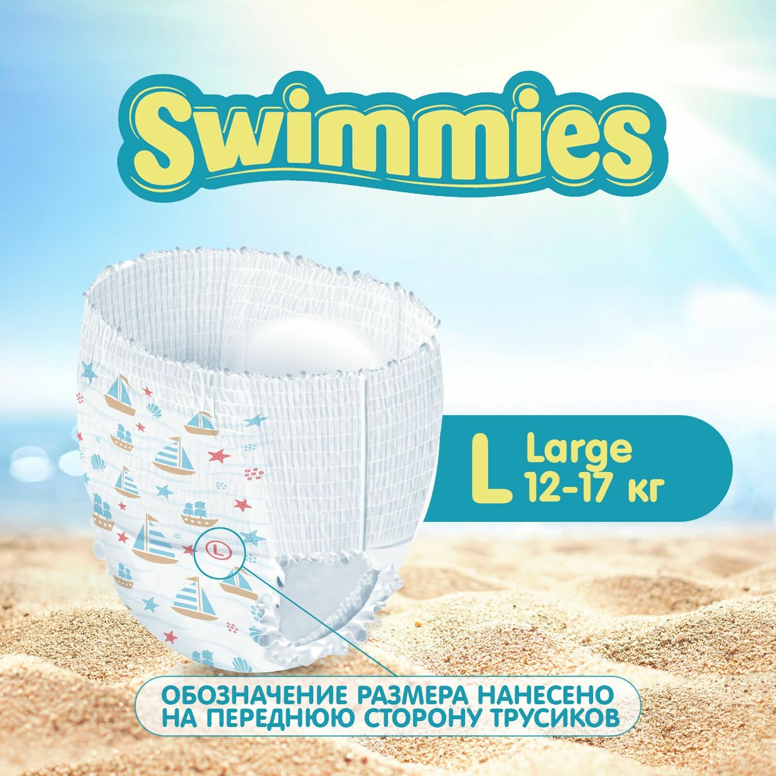 Подгузники (памперсы) Трусики для плавания Swimmies, 12-17 кг, 10 шт, размер L, детские