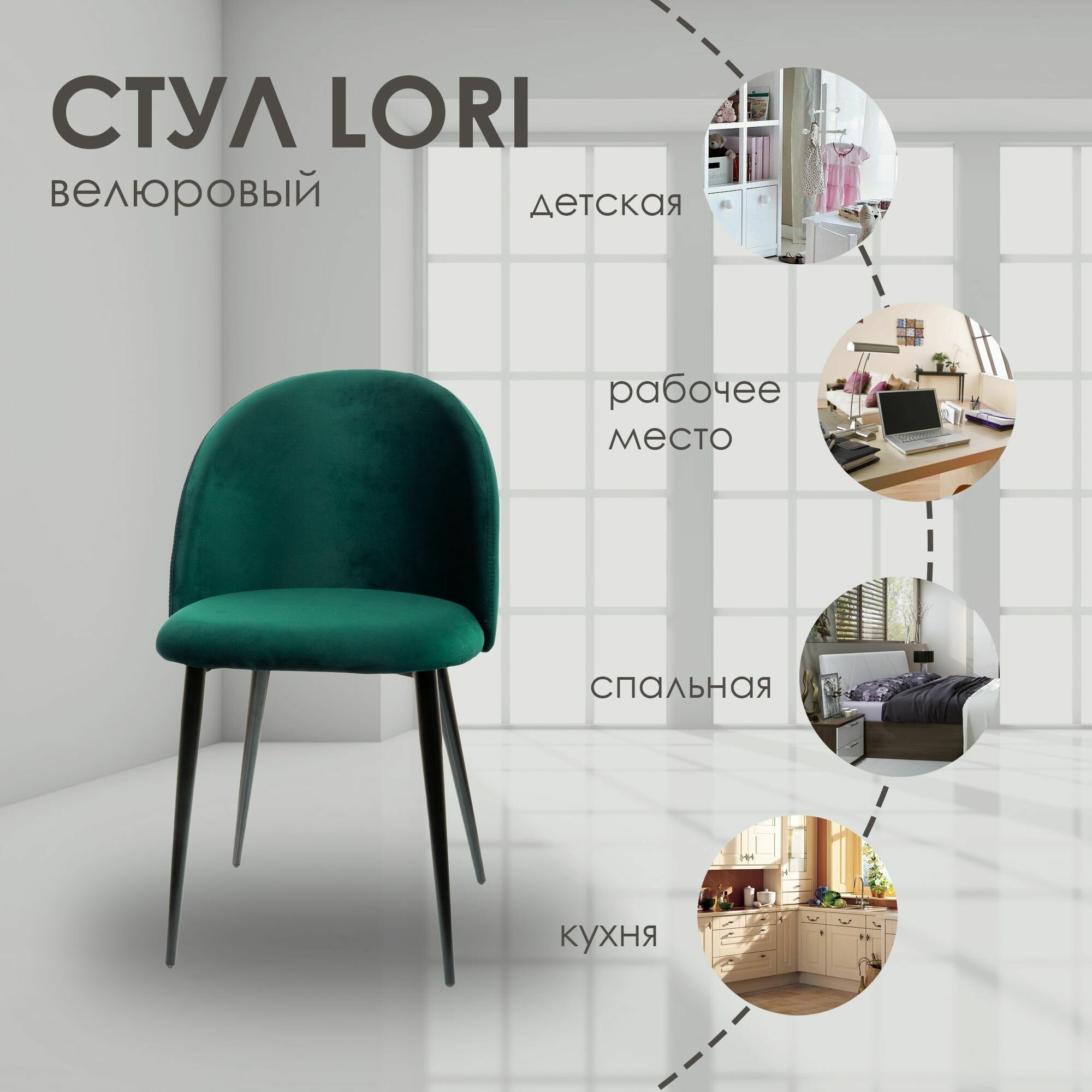 Стулья Стул для кухни LORI, мягкий велюр, зеленый 1шт