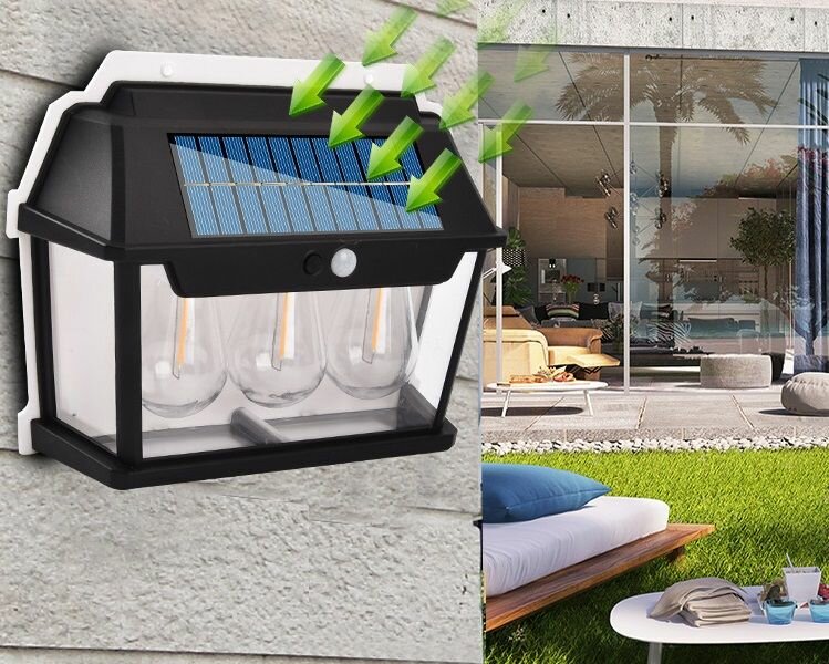 Прожекторы и уличное освещение Ретро фонарь , уличный светодиодный светильник на солнечной батарее, прожектор с датчиком движения, черный