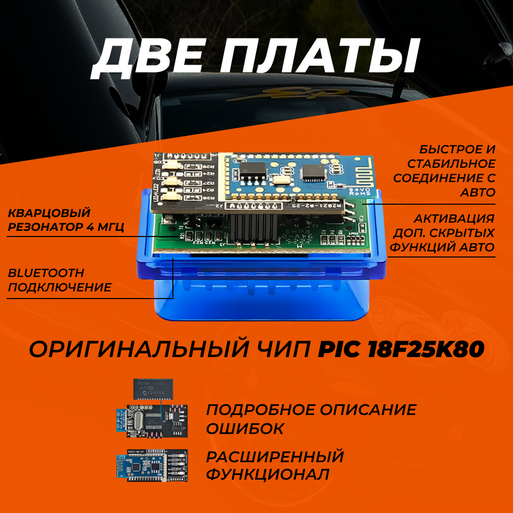 Сканеры Автосканер диагностический ELM327 OBD2 v1.5 Bluetooth 5.0 чип PIC18F25K80 2 платы - автосканер с поддержкой Android и iOS , бортовой компьютер с функцией диагностического оборудования