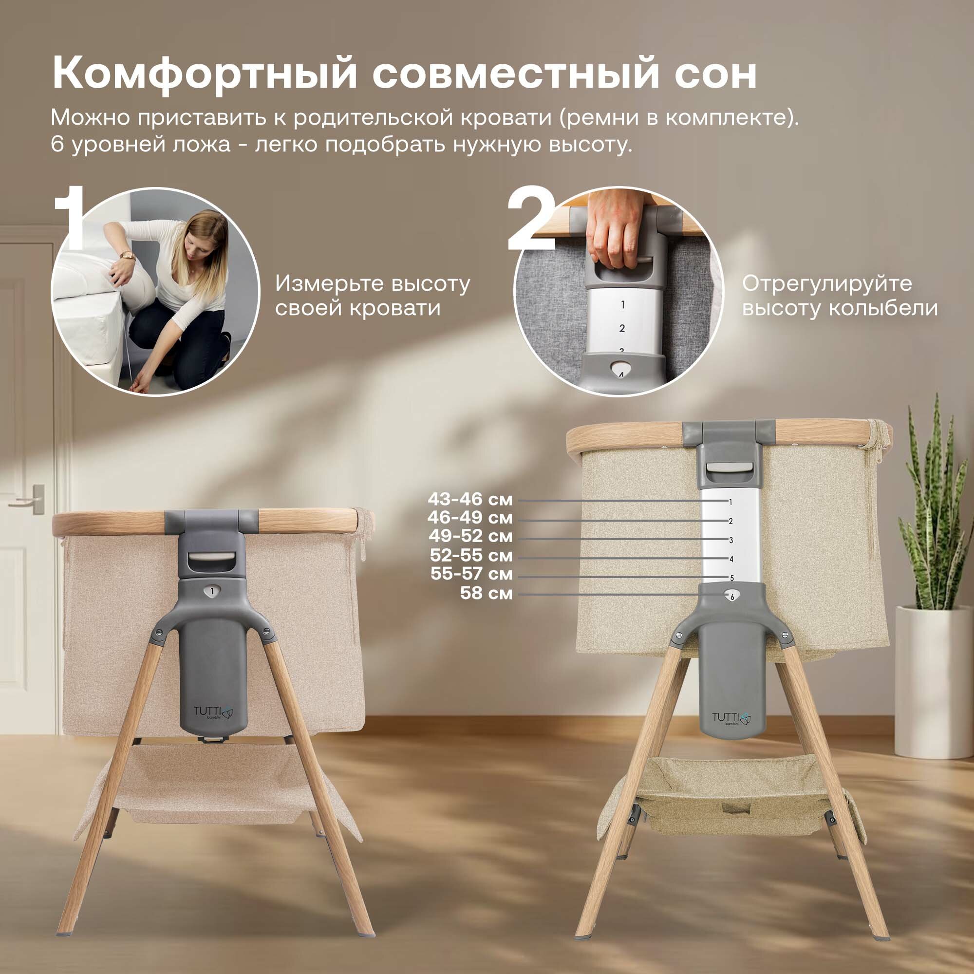Кроватки Колыбель Tutti Bambini CoZee Scandinavian Walnut and Ecru с колесами 211205/7508