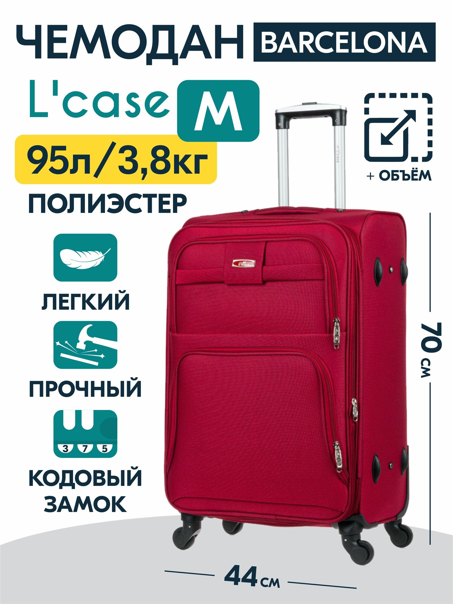 Чемодан средний L'Case Barcelona (M) бордовый, 70.5х45х30, арт:Ch0781