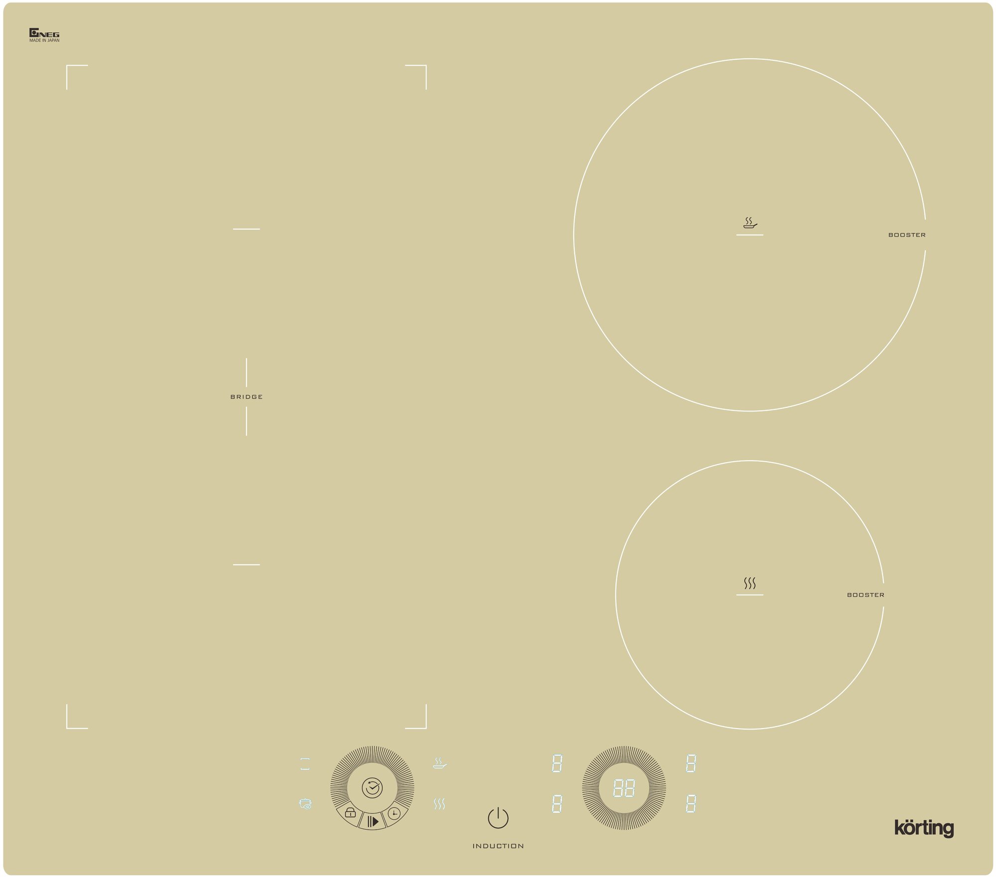 Встраиваемые электрические панели Korting/ Стеклокерамика, ширина 60 см, сенсорное поворотное правление SMART Touch Slider, 4 индукционные зоны нагрева: 2 зоны с функцией объединения BRIDGE + 2 круглые зоны, Booster на всех зонах, TWIN Booster для 1 зоны,