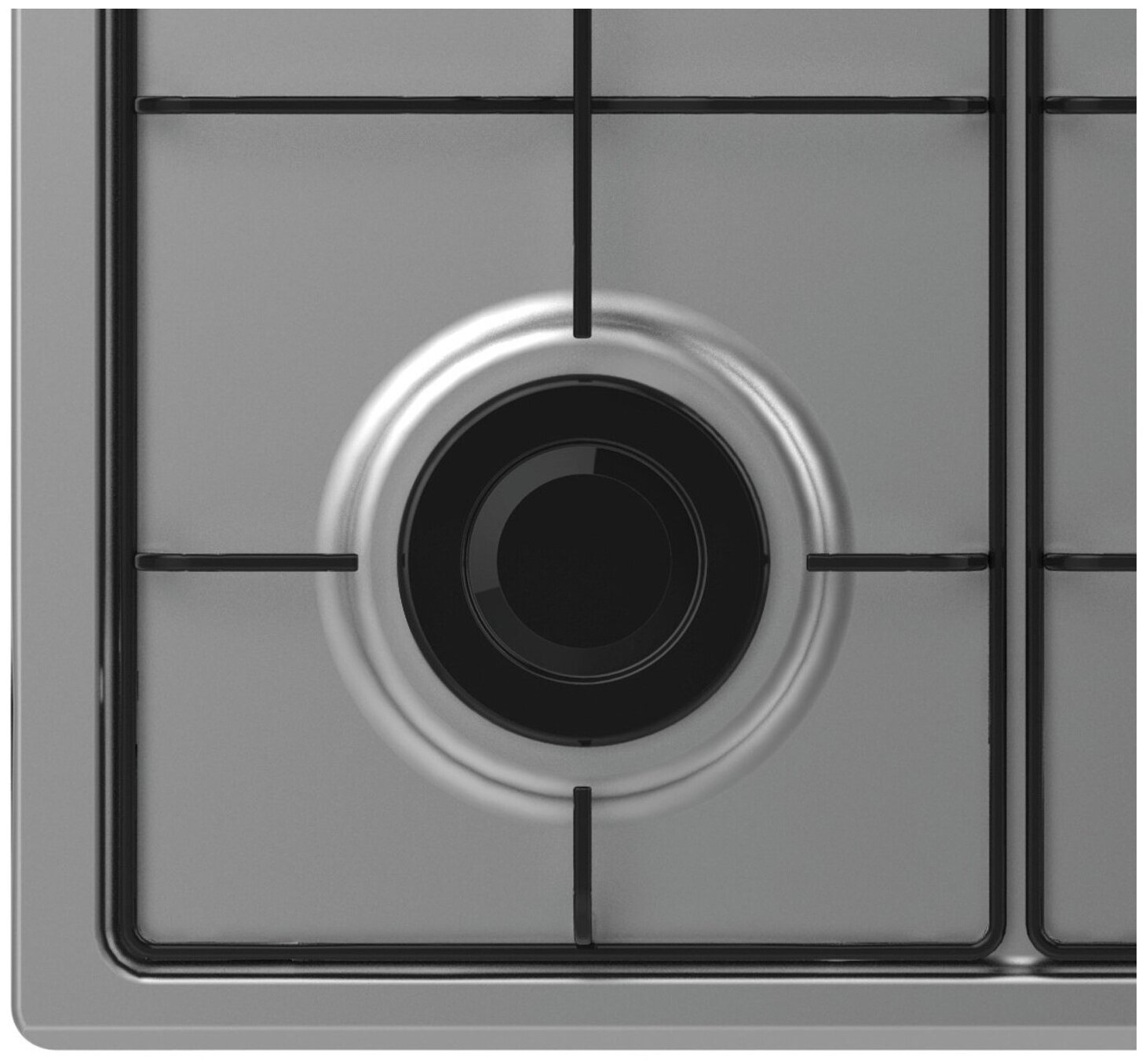 Газ, Газовая варочная поверхность 60 см. Цвет: Нержавеющая сталь. Цвет ручек: серебро. Автоматический электроподжиг. 4 конфорк