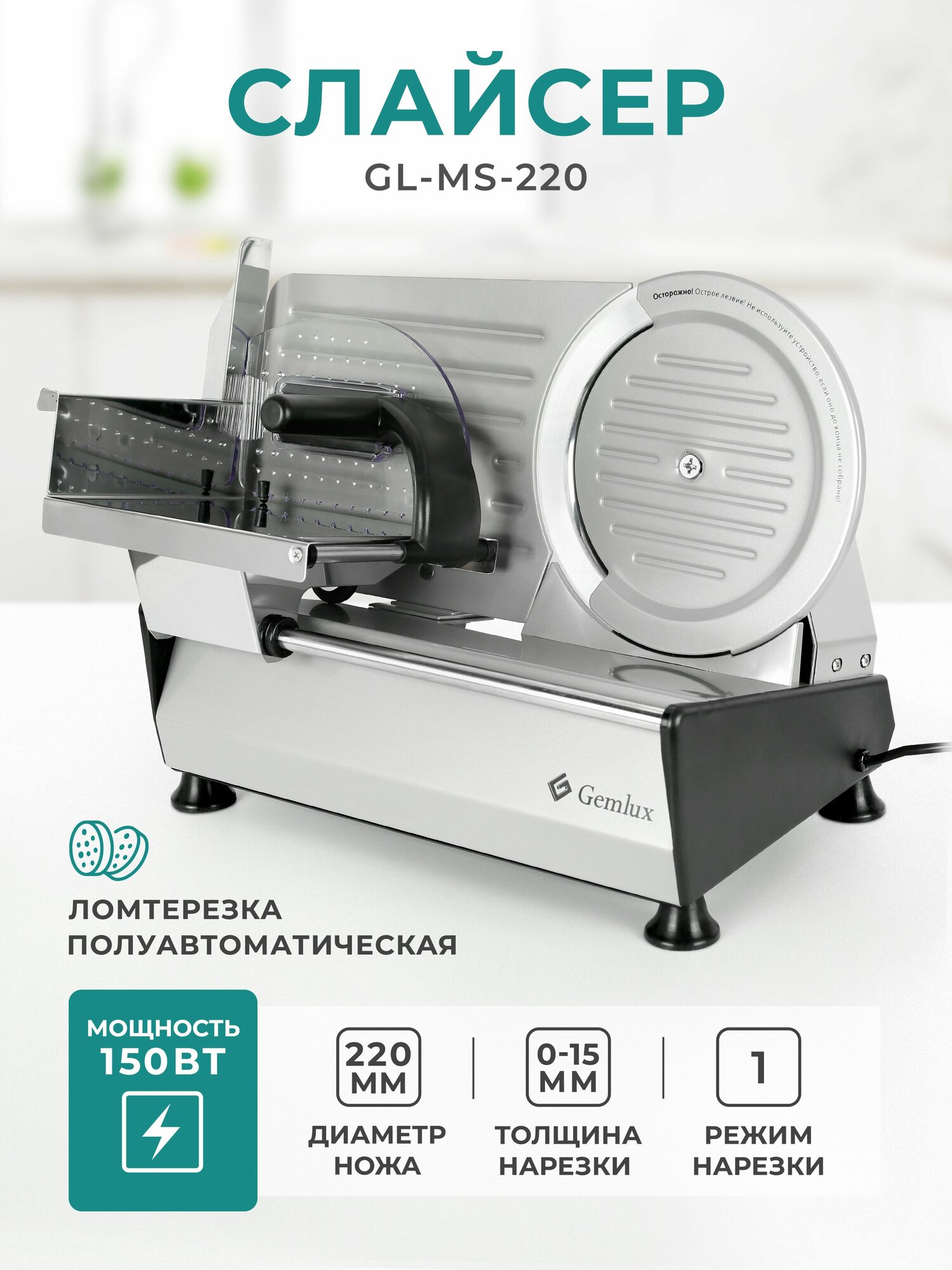 Ломтерезка Gemlux GL-MS-220 150 Ватт серебристый 16 273 ₽ Подробнее