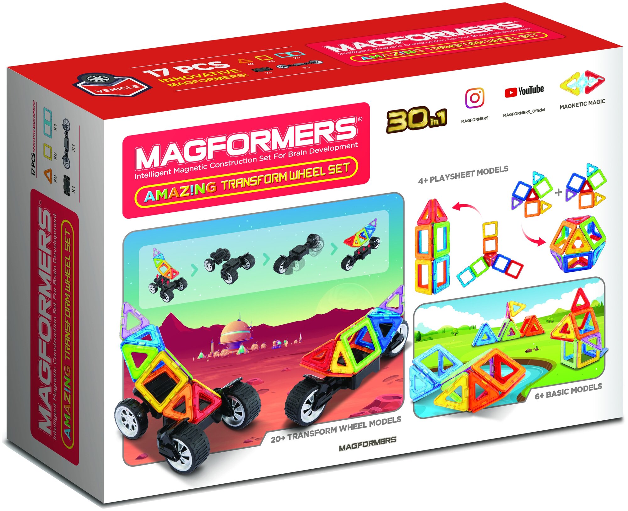 Лучшие цены. В этом наборе представлены совершенно новые трансформирующиеся колеса, которые превращаются из автомобильных в мотоциклетные и позволяют менять высоту дорожного просвета. Скоростные трассы и глухое бездорожье — теперь машинкам Магформерс подвластны все пути: фантазии нет границ. Набор Magformers Amazing Transform Wheel Set содержит 17 элементов. Комбинируется со всеми наборами Магформерс. Магазины в вашем городе.
