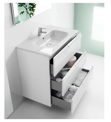 Тумбы под умывальник Модуль под раковину Roca Victoria Nord 78,5х46х74см, арт. ZRU9302835, ice edition, с тремя ящиками, ножки в комплекте