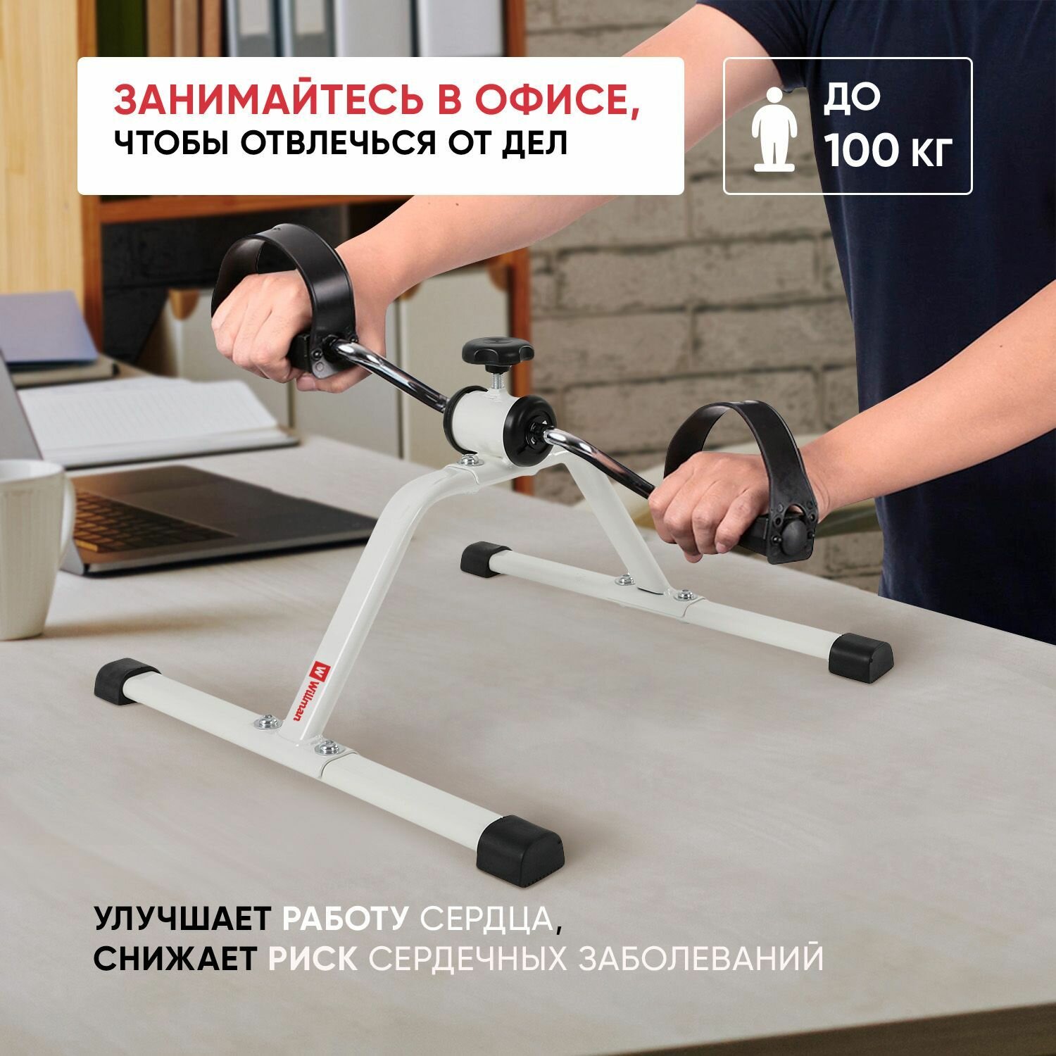 Велотренажеры Велотренажер для дома мини кардио Willman (Classmark) ES-8102-W, Тренажер для ног и рук спортивный механический, портативный, для похудения и реабилитации, белый