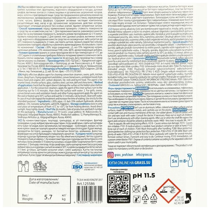Фритюрницы и мультипечи Чистящее средство Grass PROFESSIONAL Grill, анти-жир 5 л