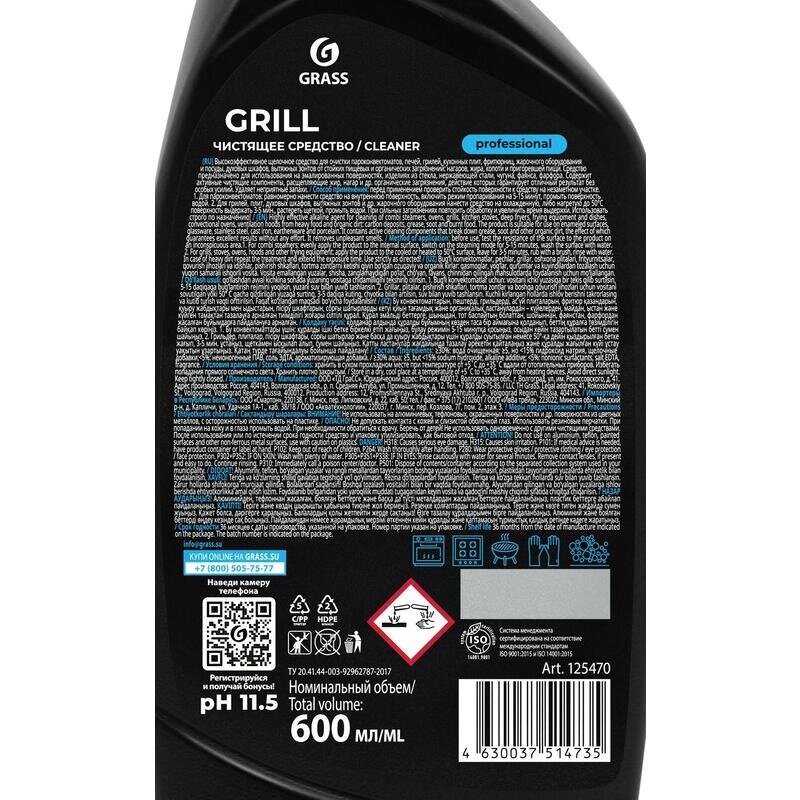 GRASS/ Чистящее средство GRILL Professional, антижир, жидкость для удаления жира, нагара и копоть, 600 мл 400 ₽ Подробнее