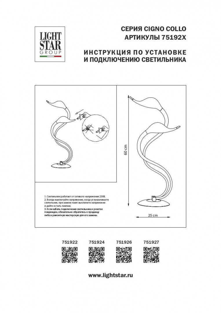 Настольная лампа Lightstar Cigno Collo 751927 8 580 ₽ Подробнее