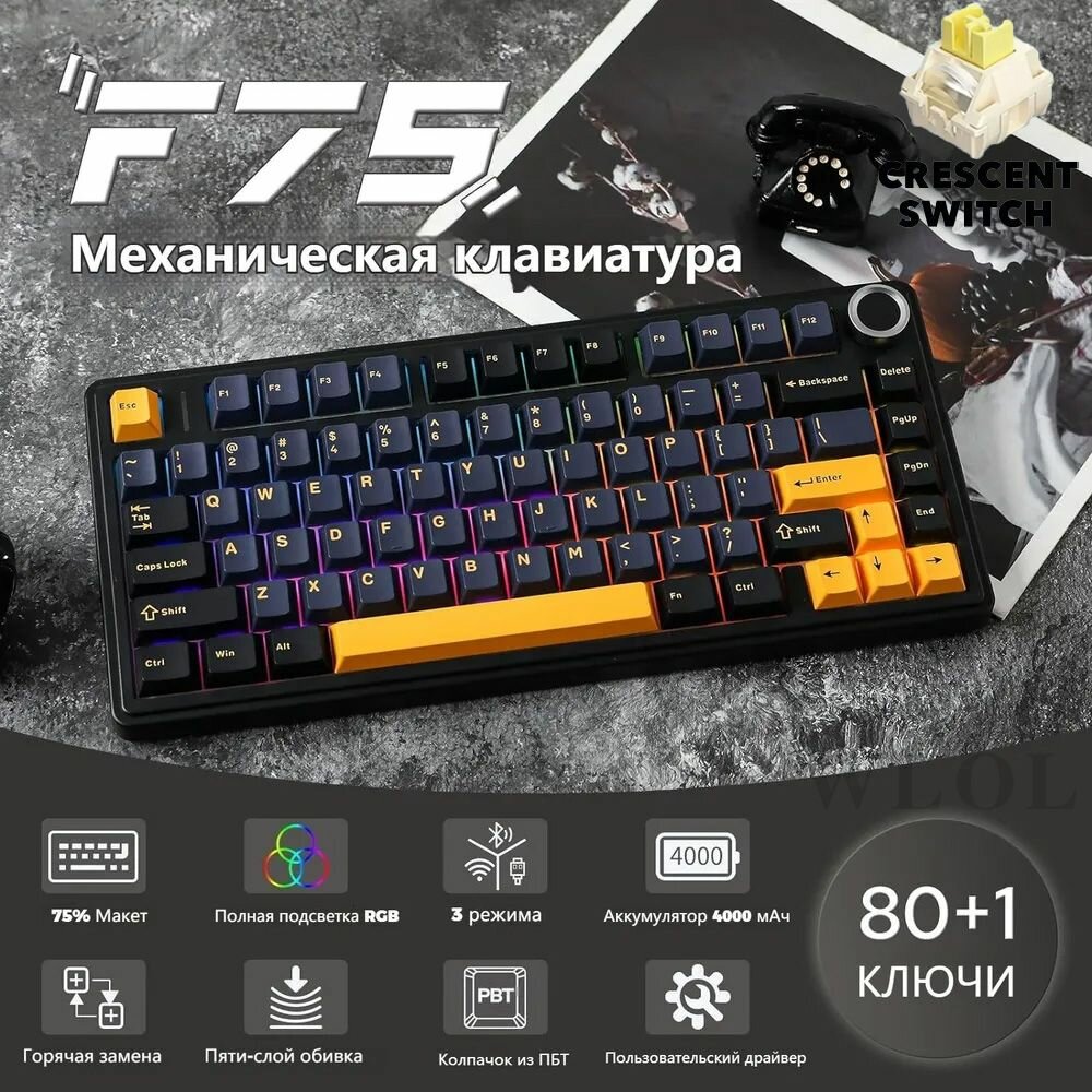 Клавиатуры Беспроводная AULA F75 механическая клавиатура, Bluetooth /2.4GHz/ USB - C, русская гравировка