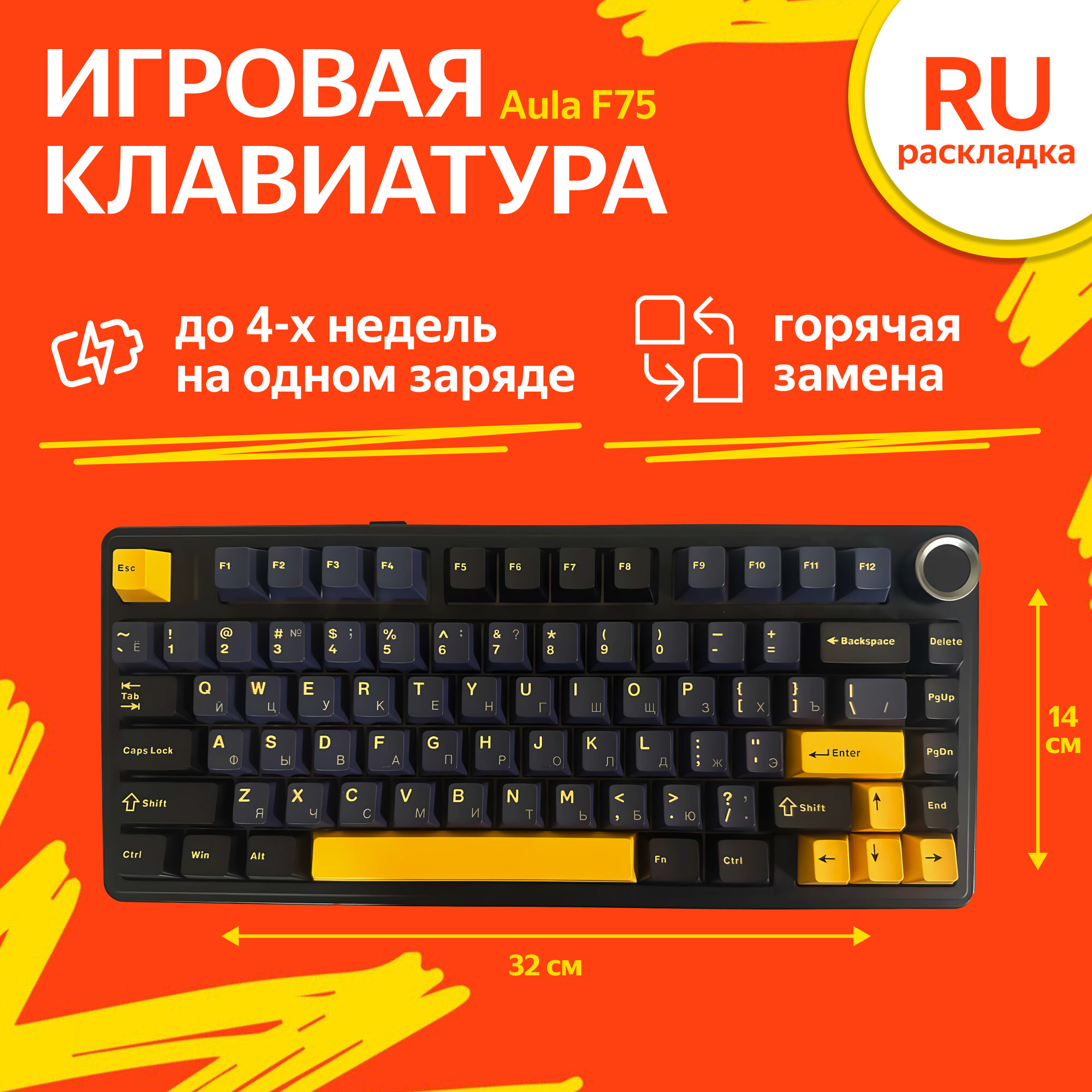 Беспроводная механическая клавиатура Epomaker Aula F75 черный/желтый, русская гравировка 6 290 ₽ Подробнее