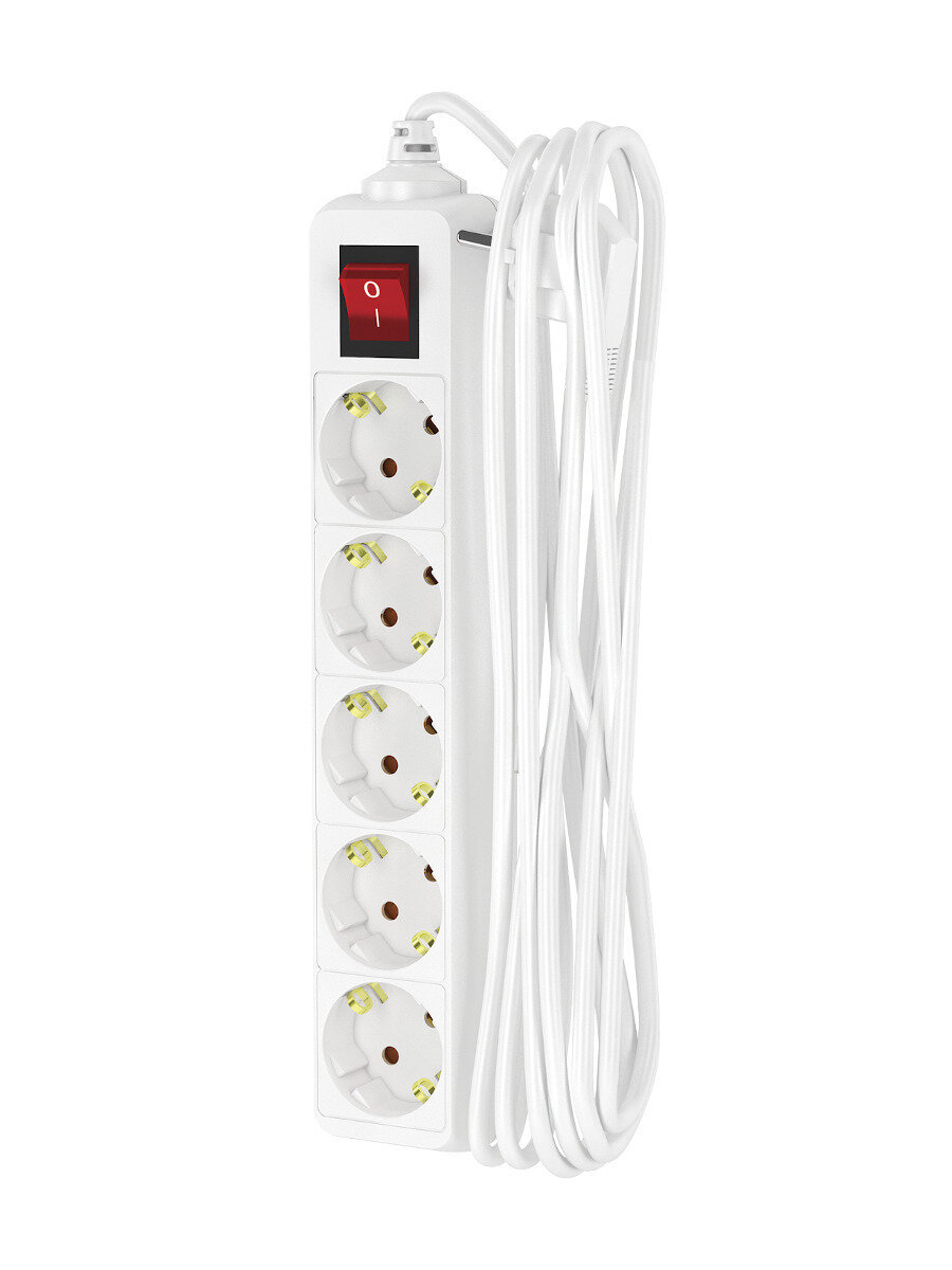 Сетевые фильтры и удлинители Удлинитель сетевой для розетки фотон 16А 5м 5 розеток с выключателем с заземлением, белый ГОСТ