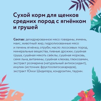 FLORIDA для взрослых собак крупных пород с ягненком и грушей (3 + 3 кг) 4 440 ₽ Подробнее