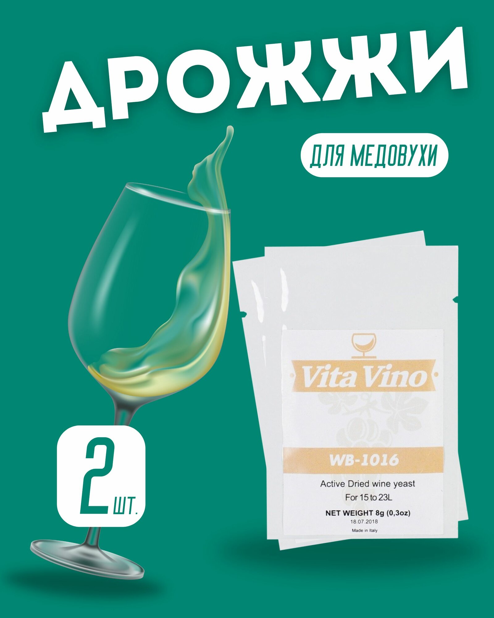 Винные дрожжи Vita Vino WB-1016, 4 шт по 8 гр, Италия (Дрожжи для винограда/слив/ягод, Вита вино ВБ-1016 для белого вина) 502 ₽ Подробнее