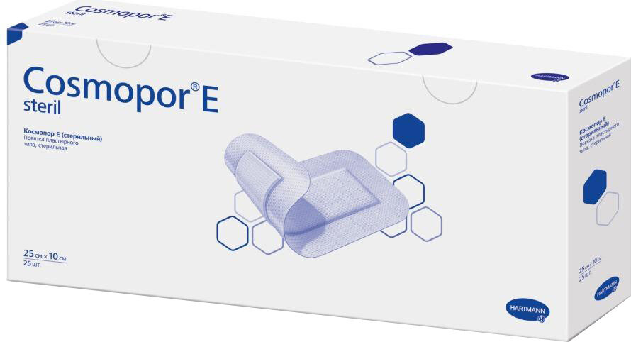 Кондиционеры Пластырь Повязка Кocмoпop Е, впитывающая, гипоаллергенная, стерильная, послеоперационная, 25 х 10 см, 25 штук