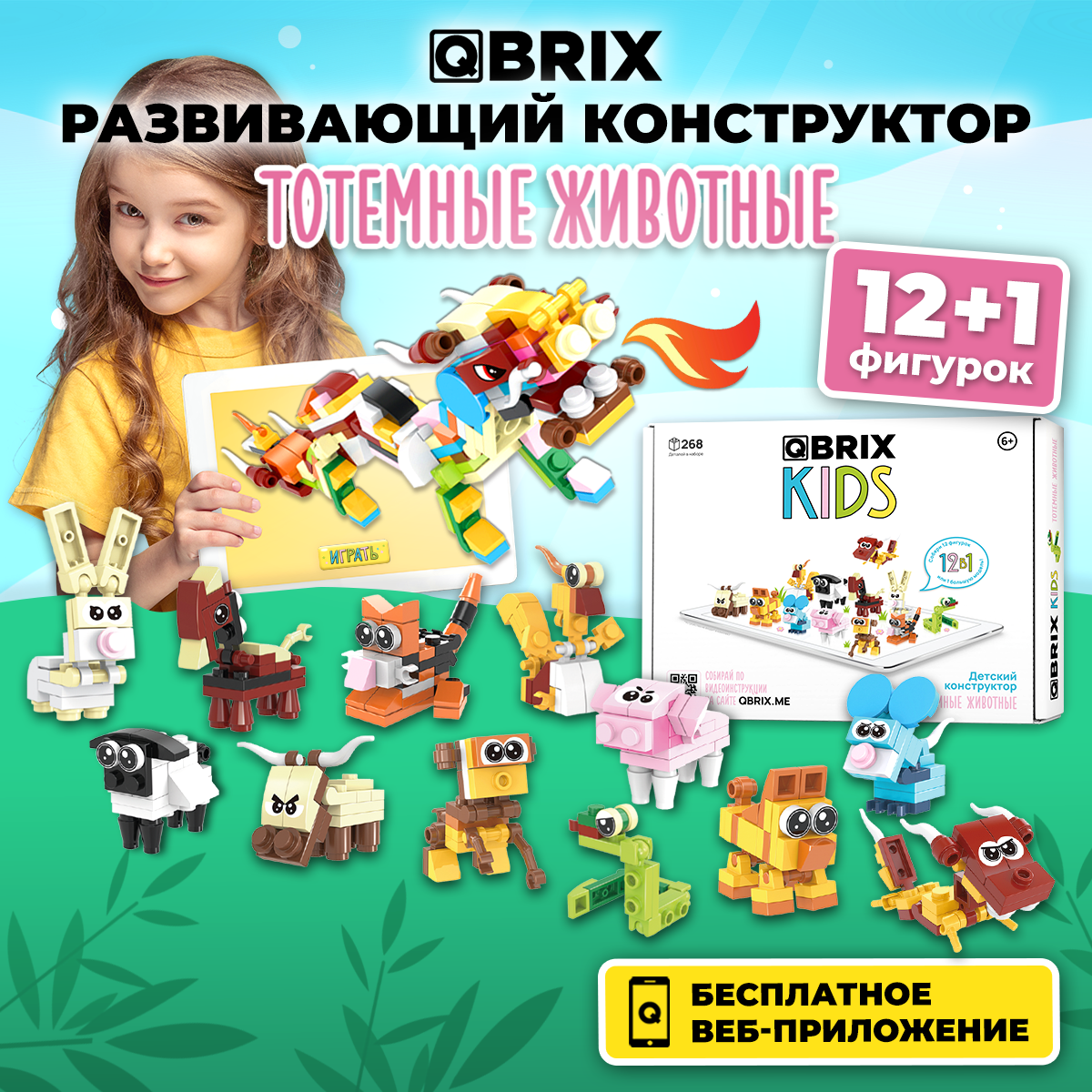 Конструкторы Конструктор QBRIX KIDS Тотемные животные (совместим с лего/lego, пластиковый, развивающий, для мальчиков, для девочек, животные)