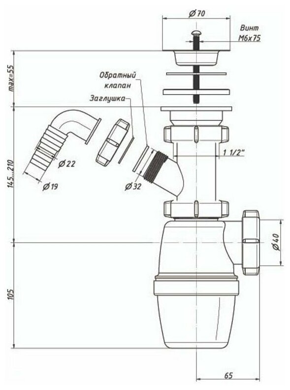 Тумбы под умывальник Сифон бутылочный Orio , 1 1/2" x 40 мм, с отводом