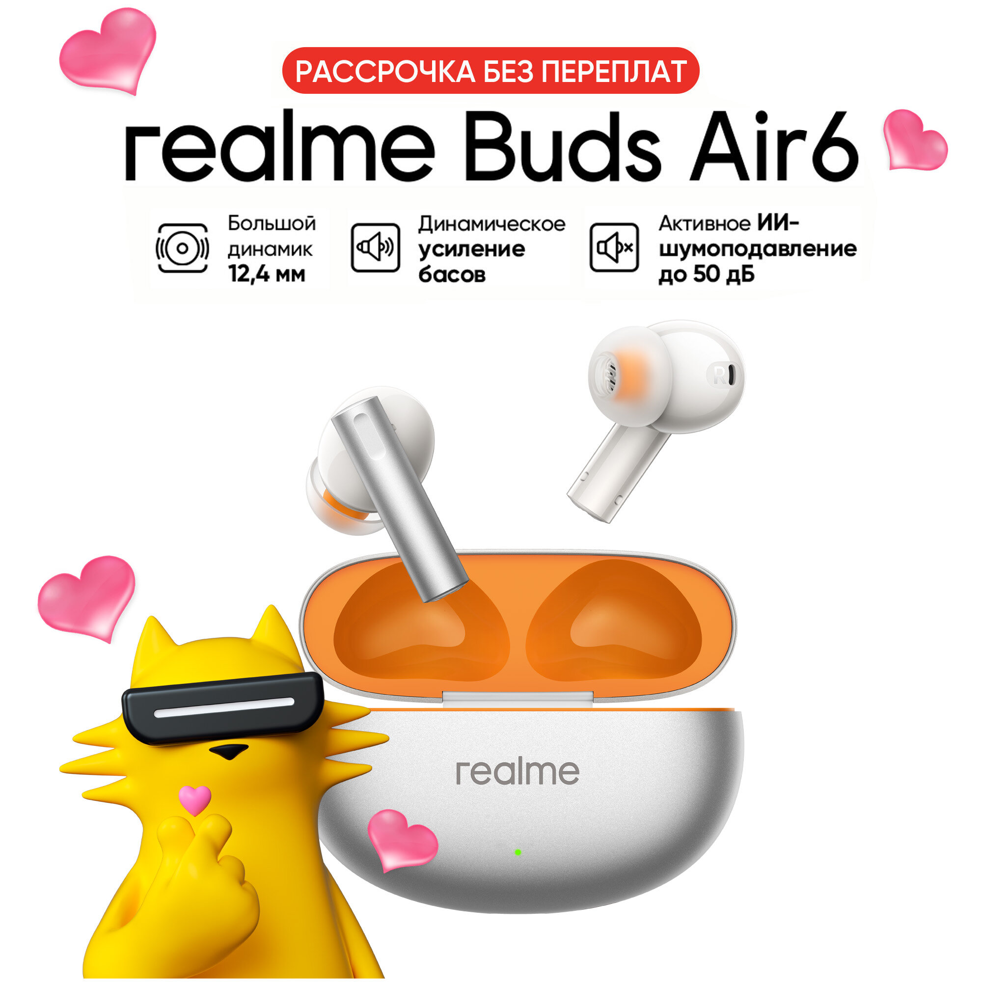 Наушники Беспроводные наушники realme Buds Air 6 RMA2402, Серебряный