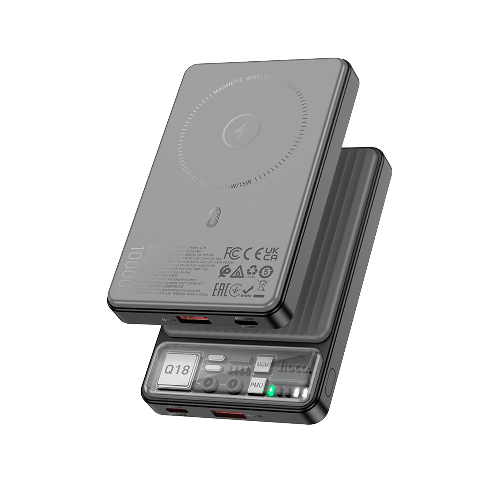 Powerbank Внешний аккумулятор / повербанк Hoco Q18 10000mAh QC3.0/PD с беспроводной быстрой зарядкой MagSafe, цвет Черный
