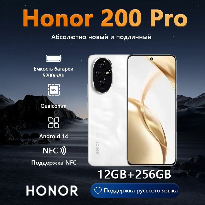 Мобильные телефоны Honor Смартфон 200 Pro 12/256 ГБ, поддержка Google\ Русский CN, Белый