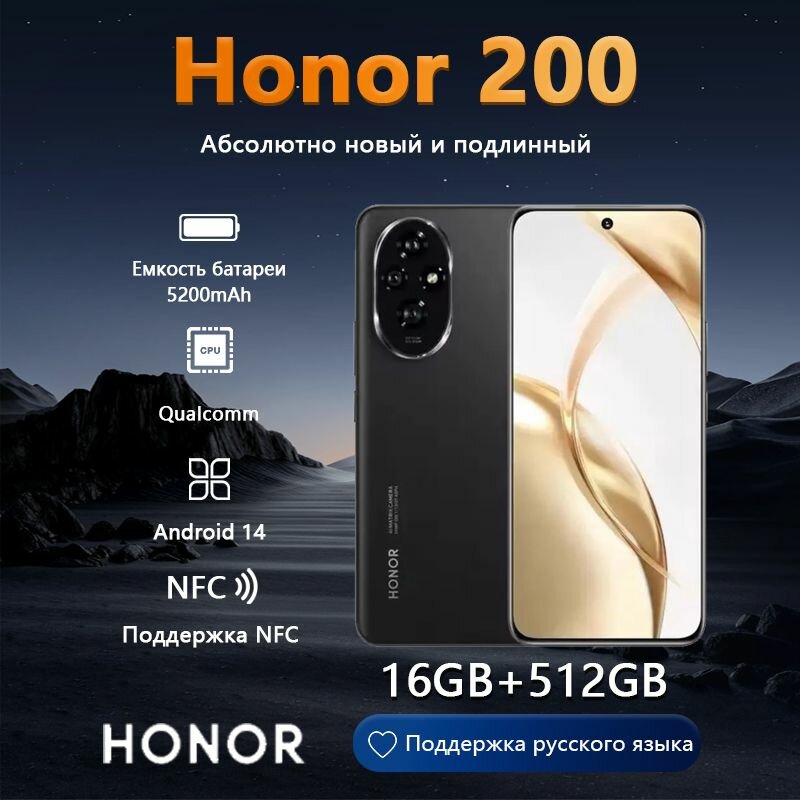 Мобильные телефоны Honor Смартфон 200 16/512 ГБ, поддержка Google\ Русский CN, черный