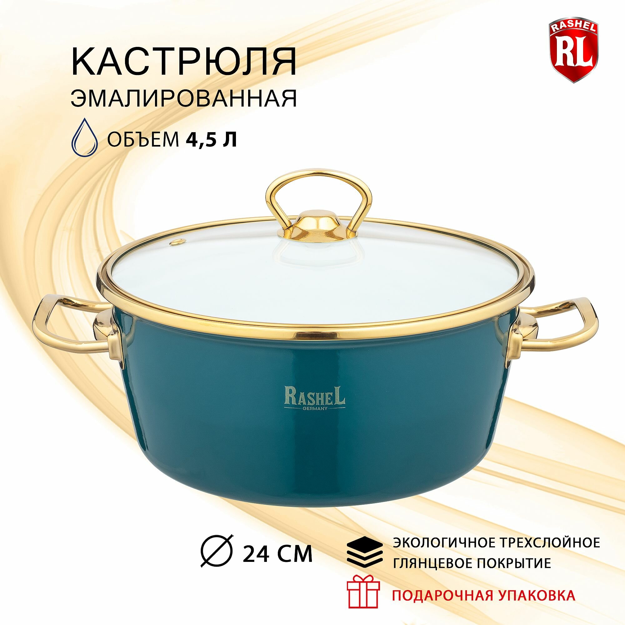 Кастрюля с крышкой эмалированная для индукционных плит Rashel Grand 4,5 л 24 см, зеленая R0424 см