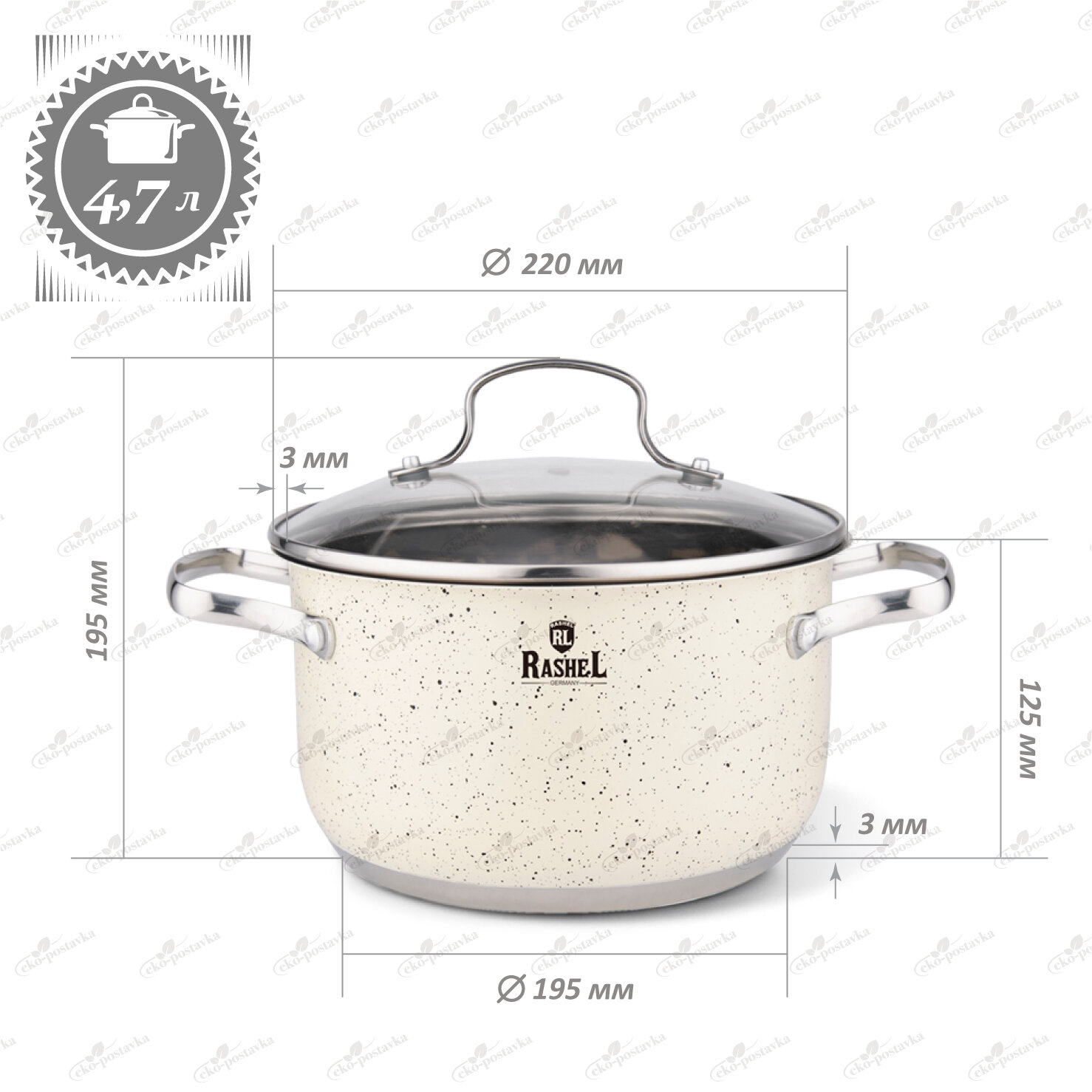 Кастрюля эмалированная 5,2 л с крышкой 26 см Rashel для газовых электрических и индукционных плит