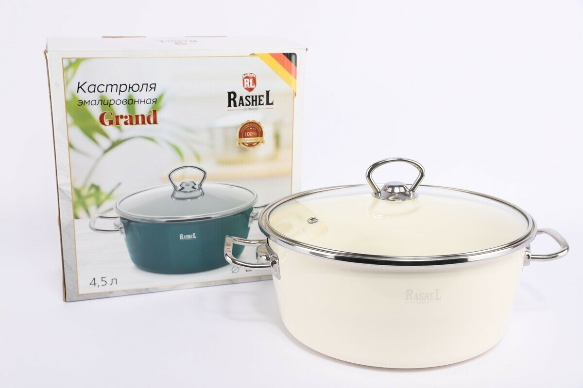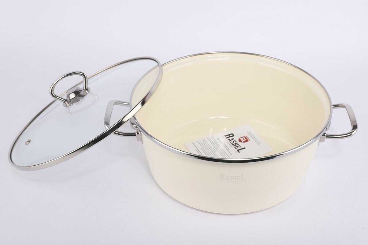 Кастрюля с крышкой эмалированная для индукционных плит Rashel Grand 5,2 л 26 см, кремовый R0926