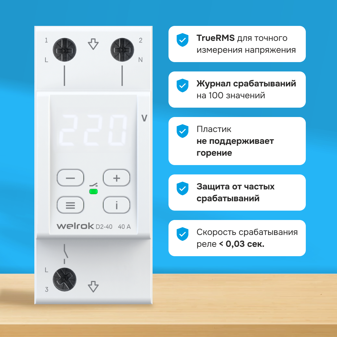 Реле напряжения Реле контроля напряжения Welrok D2-40, 40А, однофазное, двухмодульное с белой индикацией, улучшенный аналог RBUZ D2-40