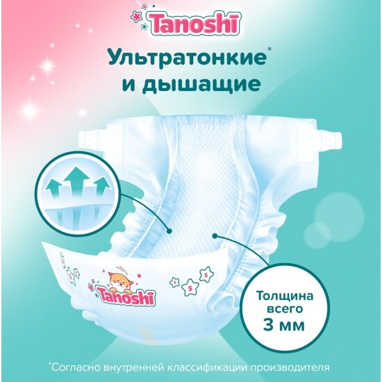 Подгузники (памперсы) Подгузники Tanoshi размер S/2 (3-6 кг), 72 шт, ультратонкие и дышащие