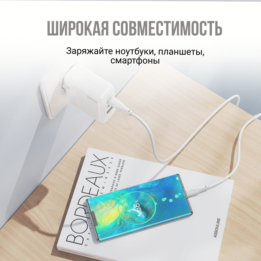 СЗУ HOCO C115A 1xUSB, 2xUSB-C, 3А, PD65W, QC3.0, GaN (белый) 1 206 ₽ Подробнее