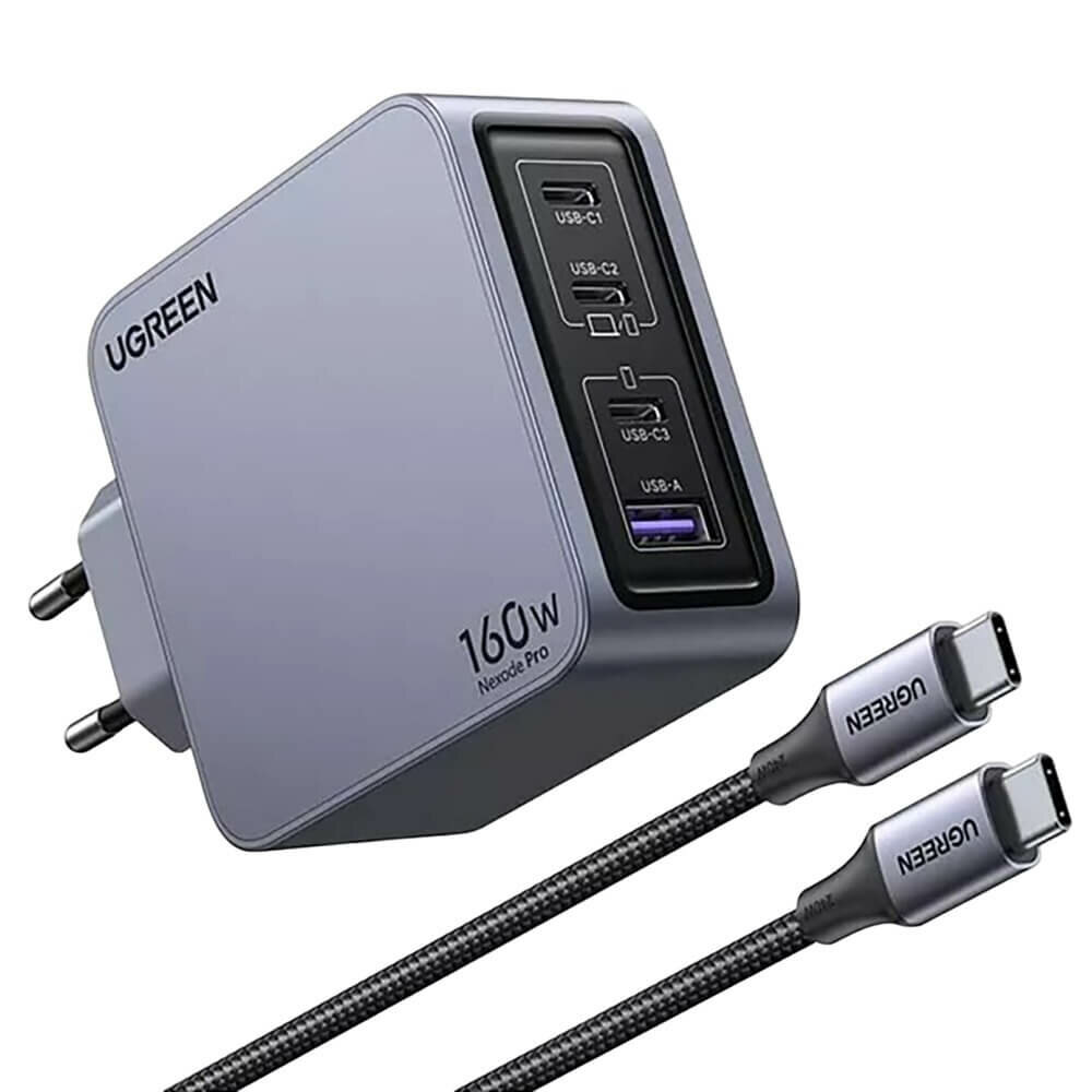 Зарядки для гаджетов Зарядное устройство Ugreen X763 Nexode Pro GaN Tech Fast Charger (USB-A/3хUSB-C) серый