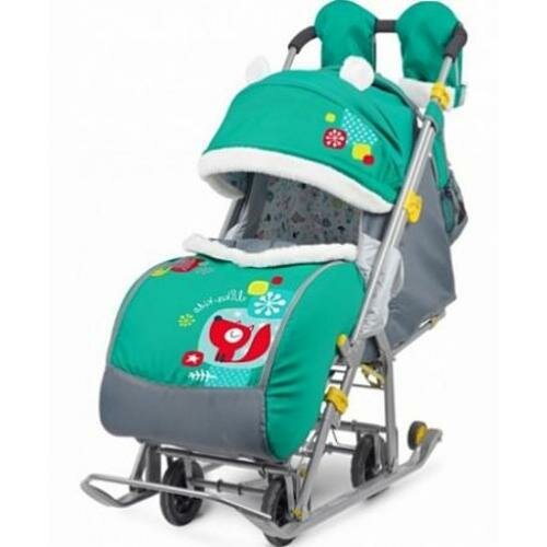 Санки-коляска НИКА Детям НД7-6/4, изумрудный "с лисичкой"