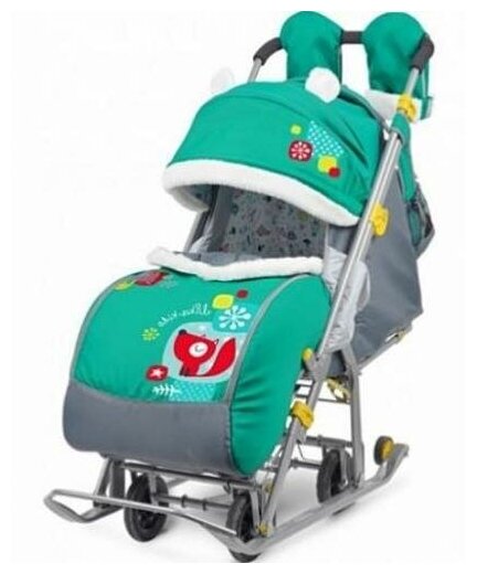 Санки-коляска НИКА Детям НД7-6/4, изумрудный "с лисичкой"