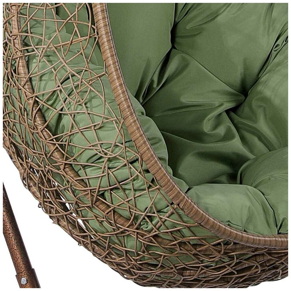 Лучшие цены. Размер корзины: H122хW84хD64 см Стойка: H2,0xD1,0 м, Каркас сталь. Материал плетения на корзине: искусственный ротанг бежевого цвета. Подушка зеленая. Ткань с водоотталкивающей пропиткой. Допустимая нагрузка: 120 кг. Магазины в вашем городе.