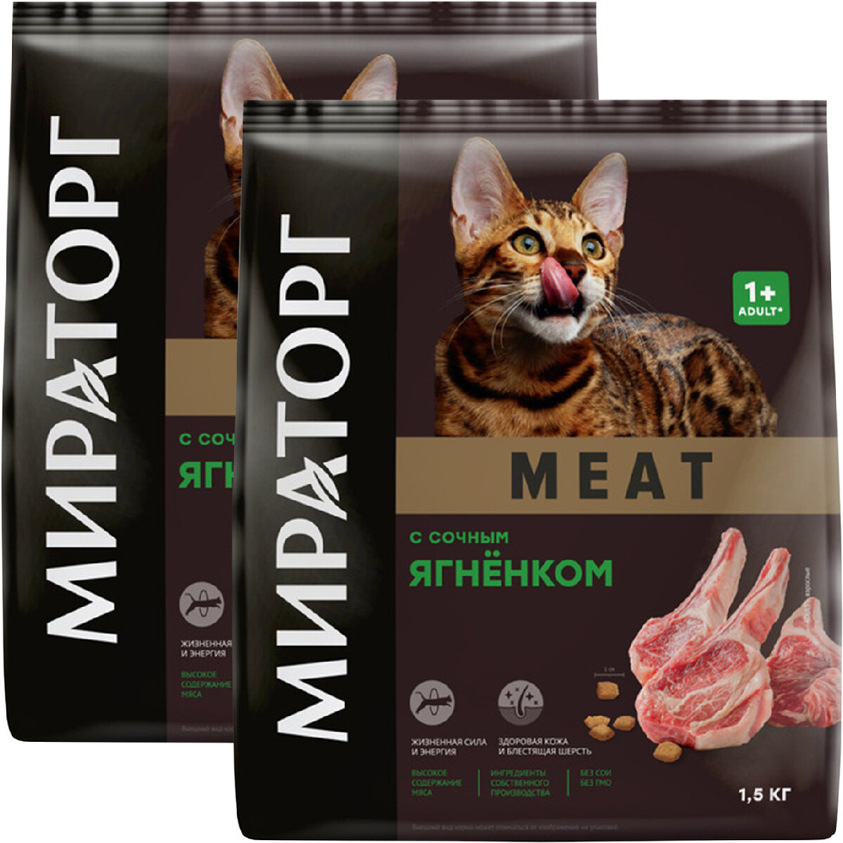 Корм для кошек Корм сухой мираторг MEAT для взрослых кошек с сочным ягнёнком (1,5 + 1,5 кг)