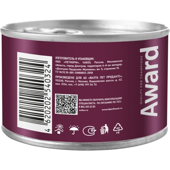 AWARD BEEF & CARROT монопрот для взр собак всех пород паштет с говядиной и морковью банка 200гр 200 гр х 6 шт 1 447 ₽ Подробнее