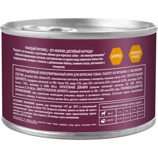 Влажный корм для собак AWARD, паштет из ягненка с яблоком, 6 шт. х 200 г 2 193 ₽ Подробнее
