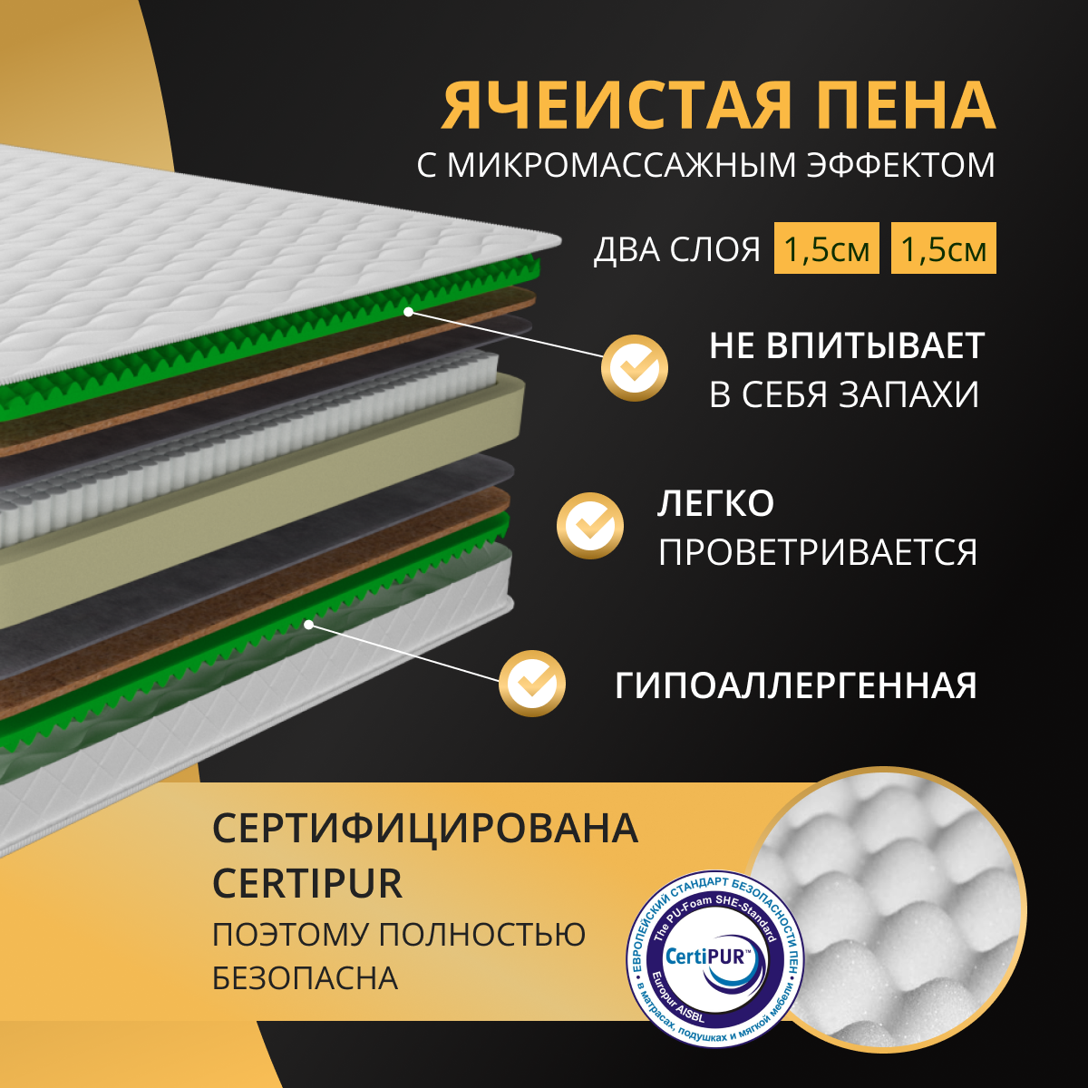 | Наполнитель | спанбонд, пена (Airy, Memory), латексированная кокосовая койра |