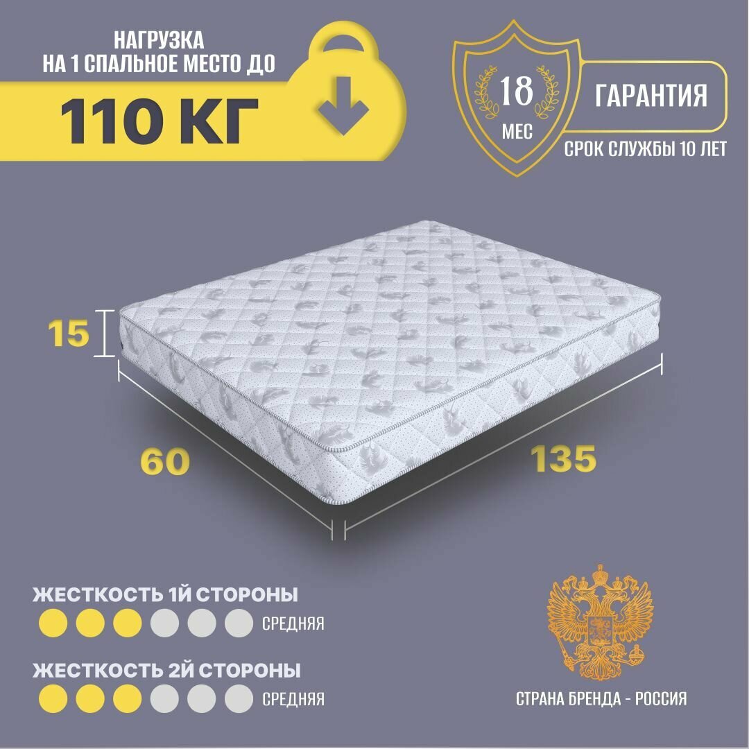Матрасы Матрас беспружинный 60х135, в кроватку, Cosmic Lua анатомический, 15 см, односпальный, средней жесткости