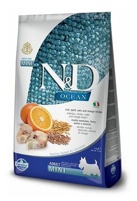 Сухой корм для собак Farmina N&D Ocean, треска, c апельсином, с овсом, со спельтой 2.5 кг (для мелких пород)