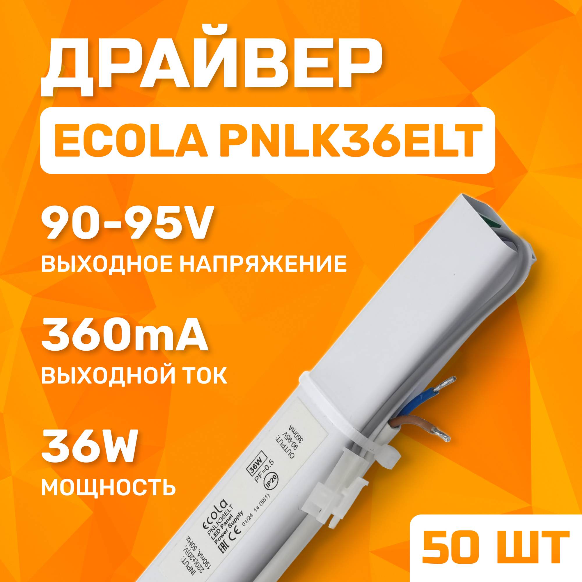 Зарядные станции Драйвер для светодиодной люстры универсальный ECOLA PNLK36ELT 36 Вт, 50 штук