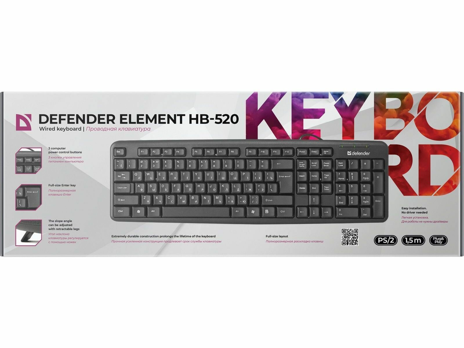 Defender Клавиатура Element HB-520 Black PS/2 [45520] {Проводная, 104+3кн. управление