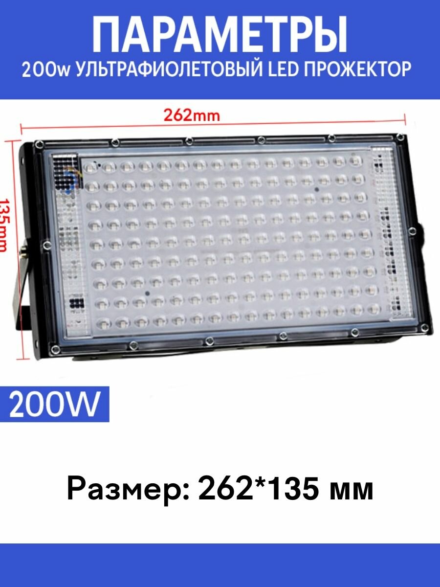 Ультрафиолетовый прожектор / UV LED Flood Light / УФ лампа / 200w / 395-400 нм