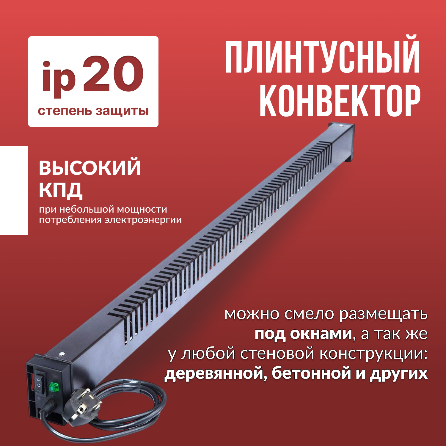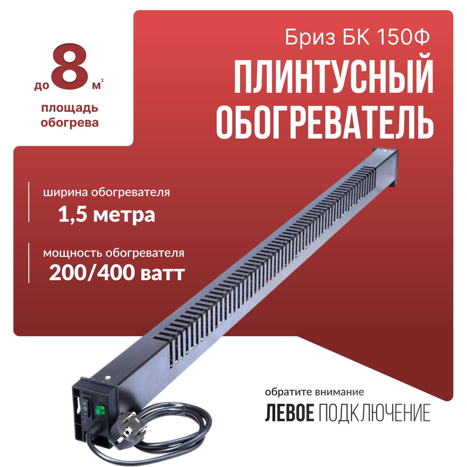 Конвектор Обогреватель плинтусный Бриз БК 150Ф, черный, вилка слева